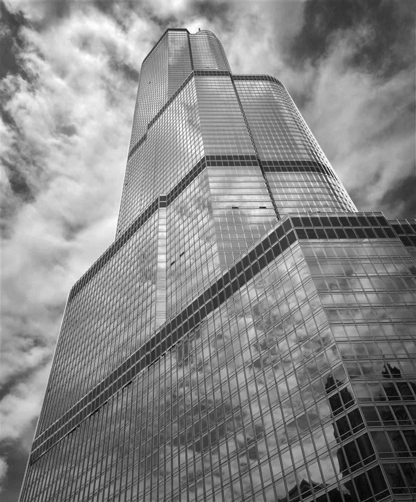 I generally agree with previous comments. In my version I have given it more contrast and applied a vignette to the outside. I have taken the lettering out but as the size of the rectangles go smaller as we go from right to left it is not a simple case of using the clone tool in Photoshop. I used Filter/Vanishing Point |