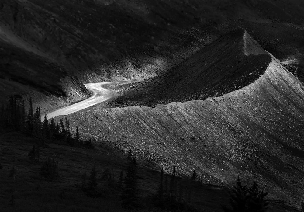 I think that this images is made for mono. I prefer your main picture as it emphasises the ridge and has more contrast. I agree with Jeffrey's crop. Without seeing the original I wouldn't have known that streaks at the top were snow so I would clone these out. I have also lightened the top of the ridge in the distance. |