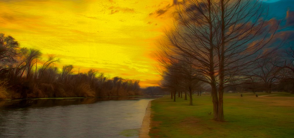 You have some nice curves with the river bank taking us through the image and as Richard says a nice mix of colours. I agree with Barbara about the lack of detail on the trees on the LHS. The moon spoils the image for me.