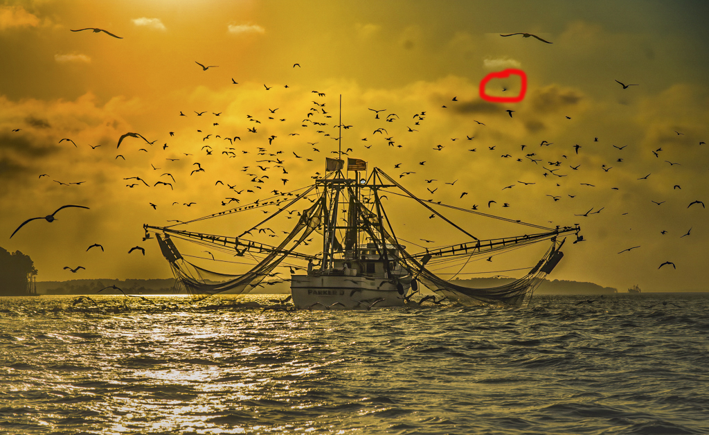 Great photo Sophia. Pete and Jim have both improved the image. If it were mine I would use the best of each. For me I would replicate Jim's sea and boat and use Pete's sky (See attached). If you decide to print and hang it then you may want to remove the bird I have circled in red which appears to be smudged or you could replace it with a bird cloned from elsewhere. |