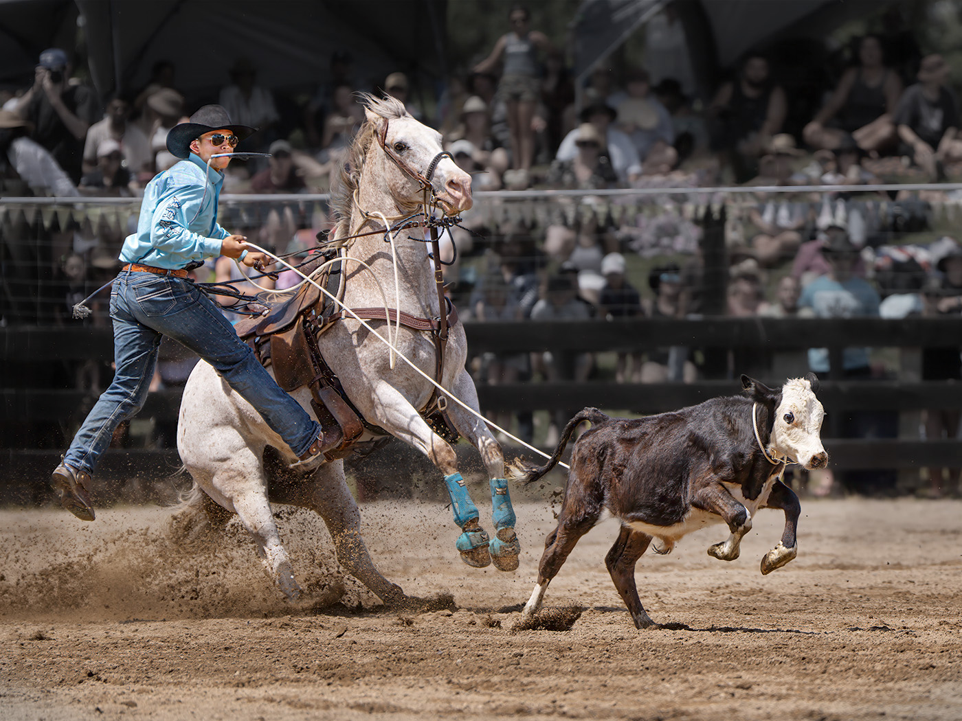 You caught this at just the right time. A great shot. I agree with darkening the background. In the image below I took out the lady in white as my eyes were drawn to her. I also reduced the brightness at the top of the riders shirt and brightened his face. I took the bar away that goes across the middle but didn't like the result and so put it back. |