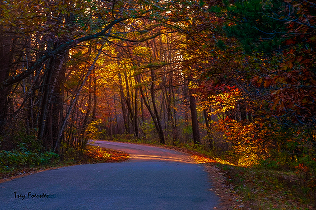 For me this image has great impact when the point of fixation is the beautiful ring of light created by the late day sun through the yellow and orange leaves. It appears to me that the sharpness and depth of field as well as the balance of color are well done.