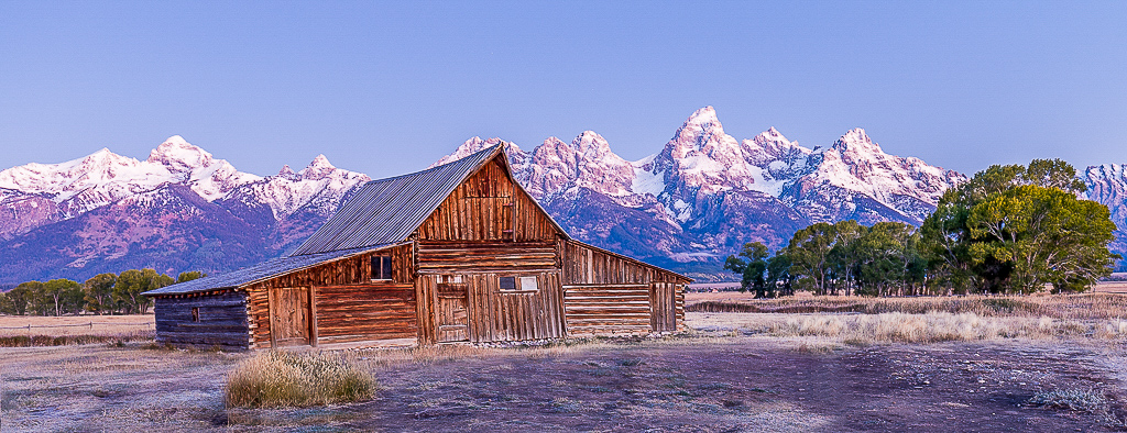 It appears that you got to the Moulton Barn at the right of day time for great lighting, balance of color and soft shadows. It seems to me that this is one of the best locations for shooting the Grand Tetons in the background. I believe you have done a good job of creating visual distribution between the barn, the grove of trees and the Mts.