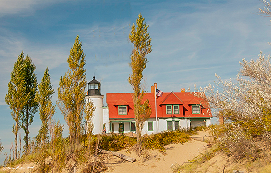 Trey, I feel that this image creates meaning for any of us who have seen the old lighthouses - it conjures up stories of times past. I believe that your composition - with one exception mentioned in a moment - is strong. In my opinion the viewer's eye is led to the fixation point of the lighthouse. I think that the reds, blues and greens in the image create good visual Harmony.