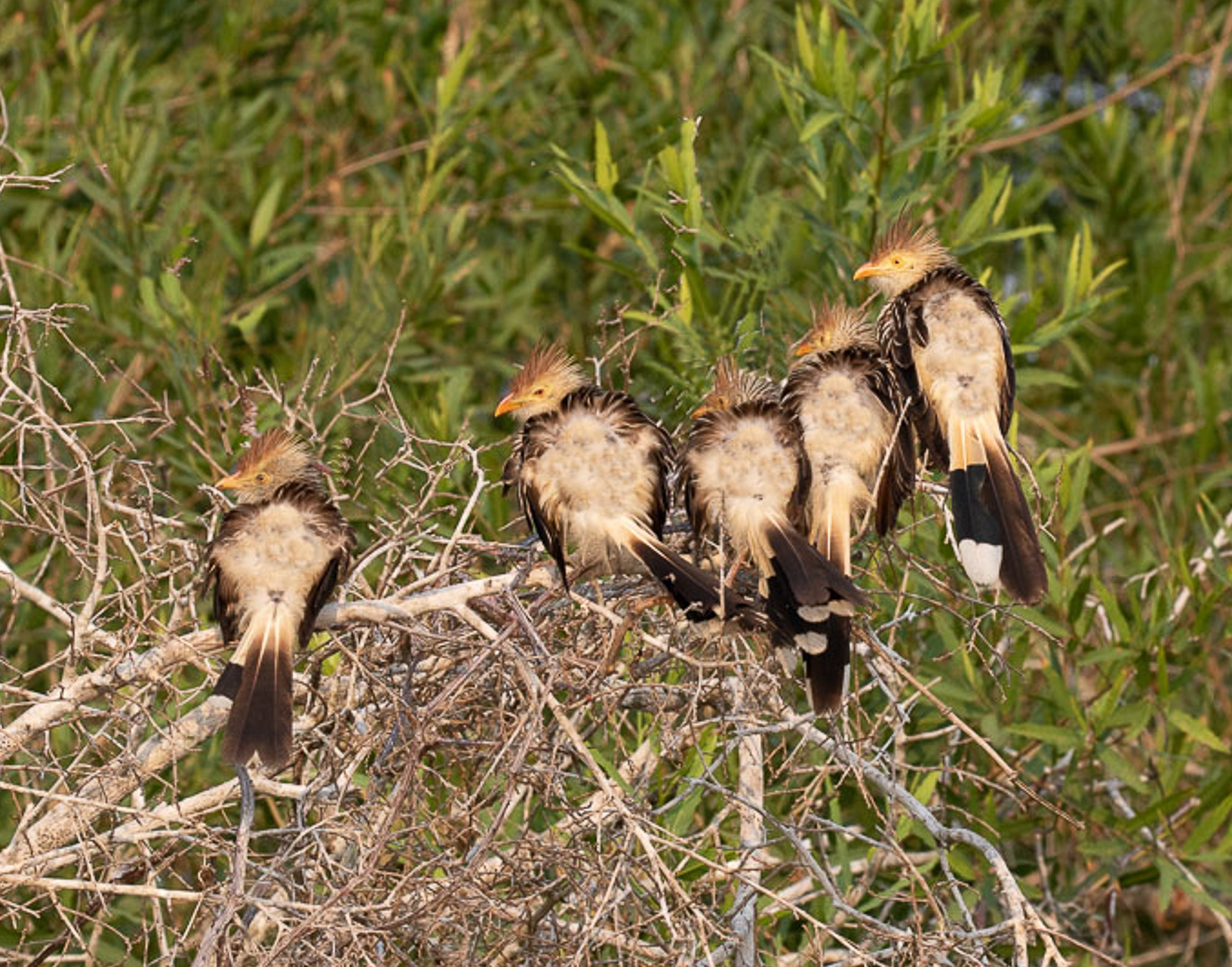 Val, let me first say that I agree with Isaac on the inclusion of the fifth bird. I also feel that the branches behind the birds can be distracting. If the VF I have rotated the image 10 degrees to make the brown/green background division close to a diagonal line. I have included the fifth bird and reduced the brightness of their backs. I also removed some distracting background branches. I would be interested in your thoughts on these changes. |