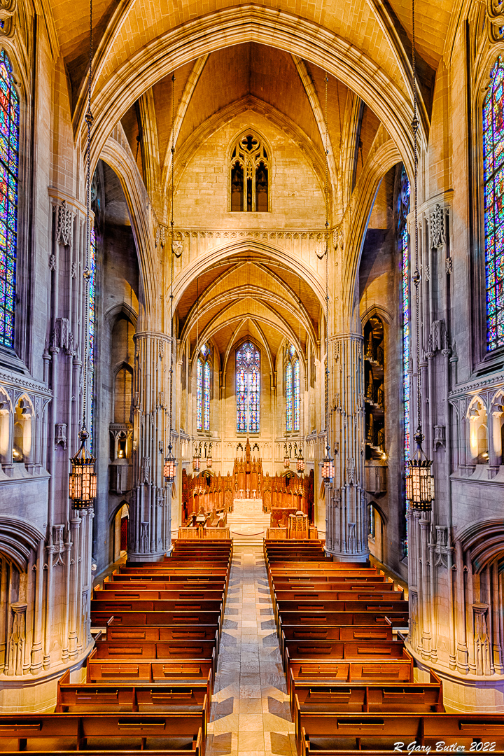 Isaac, thanks for the comments. Based on your comment on the color image I went back one more time to Color Efex and used the White Neutralization applied only to the two side walls. I used about 60% strength for two reasons. First. looking at the RAW originals there is some difference in tint to the two walls. The Chapel is being sunlit from the right which is striking the left wall but not the right one. Second, when I went above 60%, even though "Control pointed" to the sides it seemed the effect the areas lit by Tungsten light. So this is what I have now. Thanks for pushing me. |