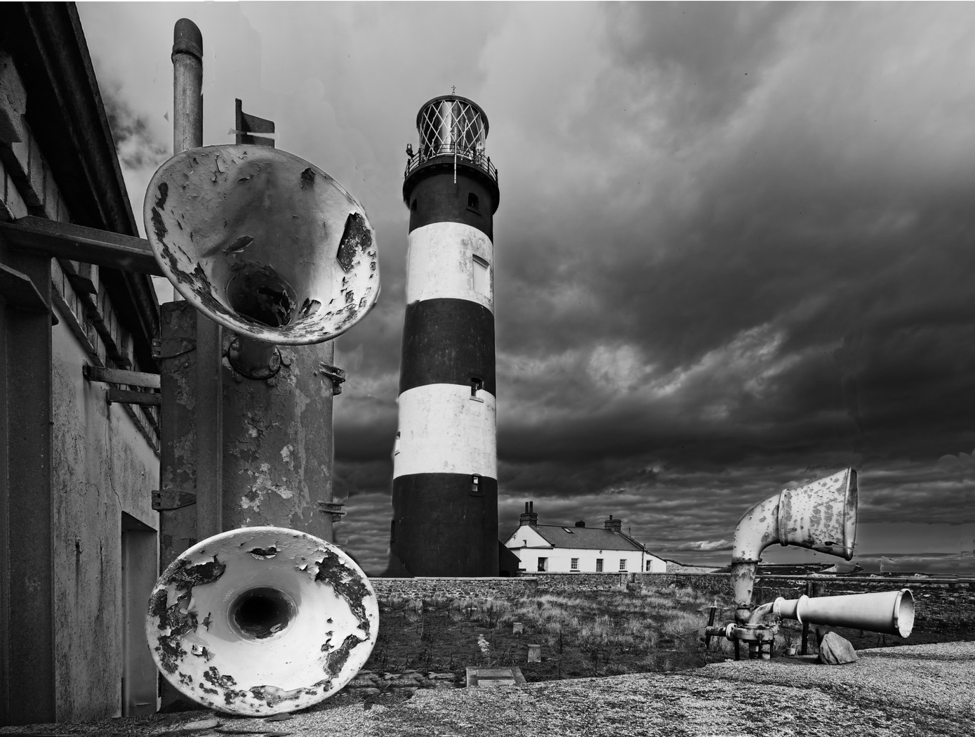 To me this "perspective" image gets better when you separate the lighthouse from the foghorns as I did in the VF. In my mind it really makes one wonder how big those fog horns really are!