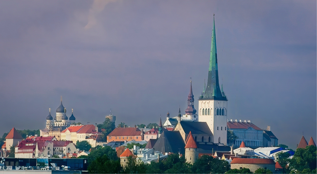 Guy I like the image and the color of the buildings in the tow. Tomy eye the image is sharp and holds the eye nicely. To me the tower was too tall and forced the image to be too much sky. I shrunk the church with the steeple by 15-20% using layer in PS. I then cropped down from the top to take out some sky. Back inLRC I shifted the Hue of the sky to bring out some of the pink/purple and then I added a Vignette. |