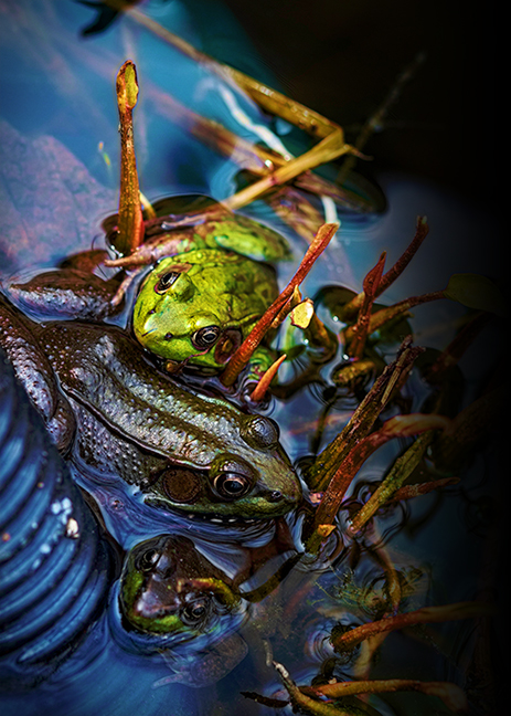 It is a good composition, but too busy. The frogs are lost in this picture. To save it I will darken the right side See if you like it |