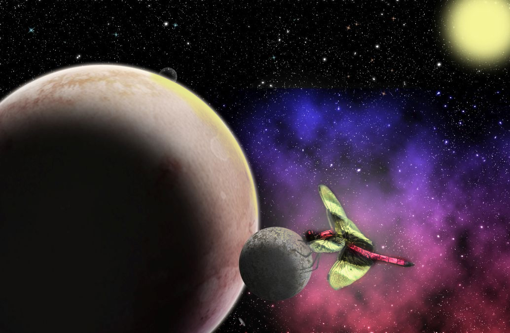 These space scenes look like so much fun. Great idea to use insects. I coloured in the dragon fly as an option and used content aware scale to bring the sun in a bit closer. Might be a bit too bright though. |