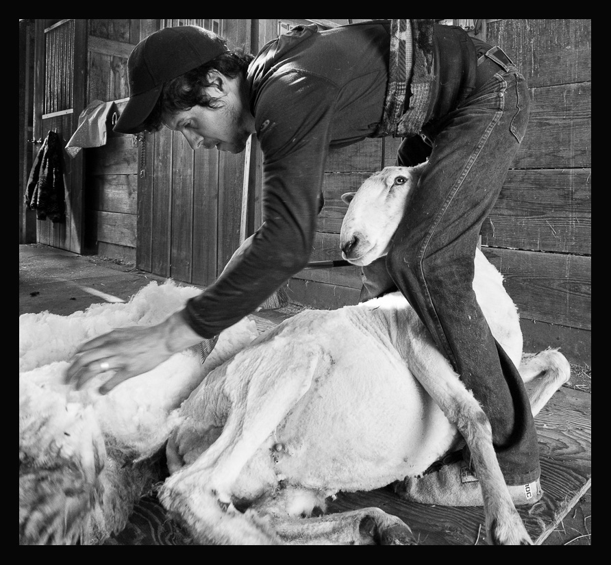I love this image. Great idea to convert to b and w. Nice to get the sheeps head in the shot. The image is very clear. I see why you cut the image at the top but it would be nice to have a bit more above his back. Maybe a simple black frame |