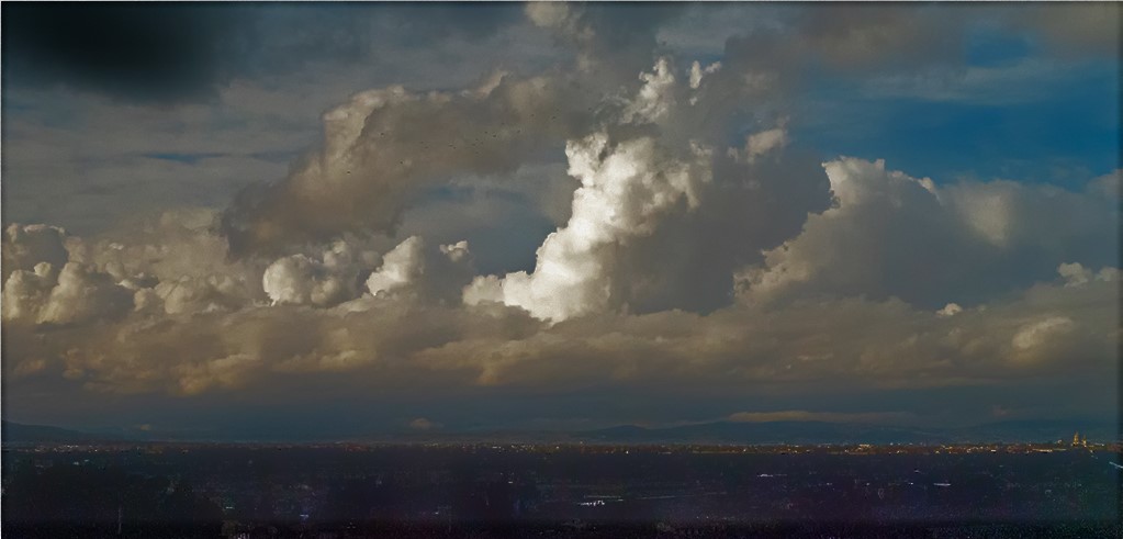 Gabriele, the sky is what is attracting me in this photo, so strong and beautiful and the magenta foreground is very distracting to me. So I darkened the sky, cropped the bottom and softened it all for a way different approach.