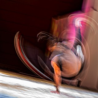 Art this photo almost looks like you took two or three slow motion photos and merged them all together and then twisted them in more circles. I can't make out anything except his hand and even that took me awhile to figure out. I am pretty sure that's a good think.