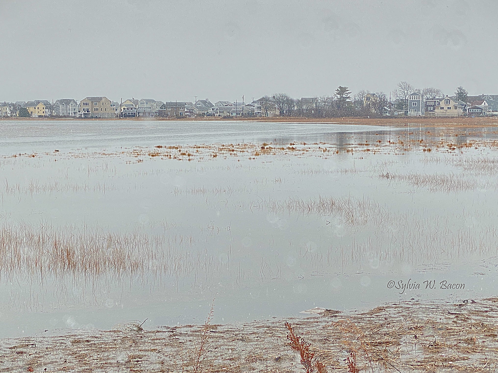 Sylvia, I really do feel the cold from your capture. Snow was flying, I am sure the wind was blowing. Glad I'm in Florida. I do like the colder colors in your original but then I can hardly see the snow that's flying, so I can't make up my mind what to do here. Ok so, I just played a little with highlights and contrast which now showed even more snow flying in front of the homes. Nice beginning of winter shot for sure. |