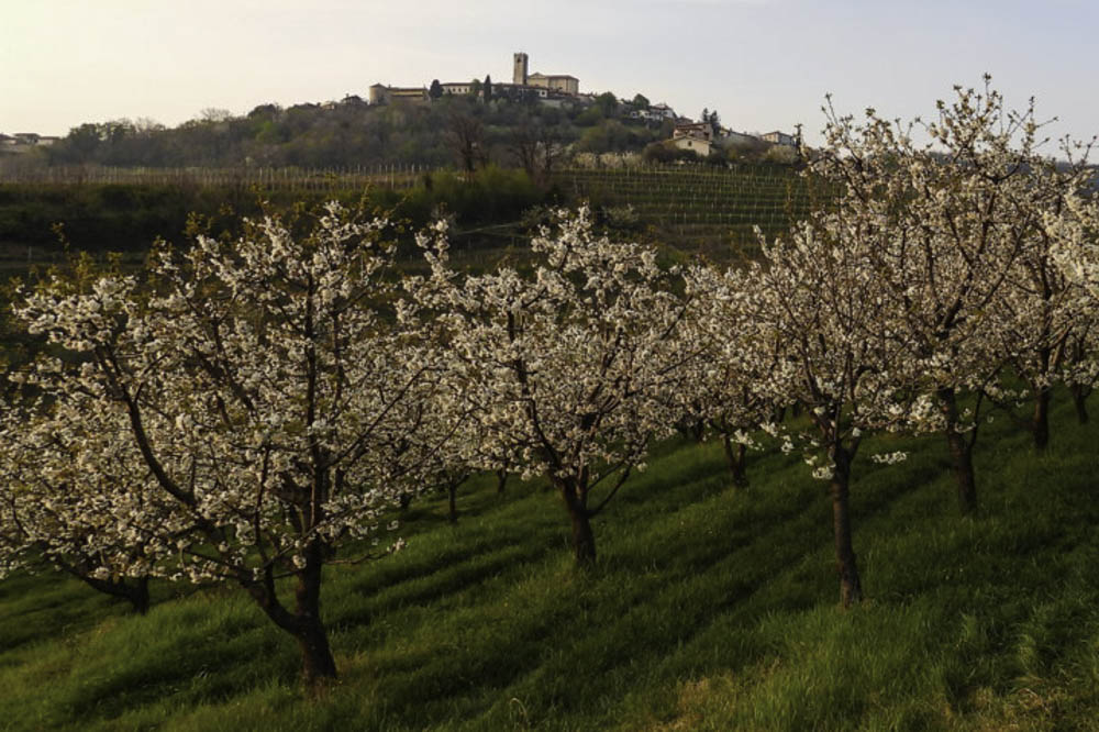 The town on the hill in the background is beautiful and sharp, as is the farmland between the town and the cherry trees. Quite an achievement at f/2.8. The cherry blossoms are lovely, but I would prefer to crop off the right tree to give better balance to the foreground and background. Please forgive my edit to your actual photo. I did keep the same aspect ratio.
