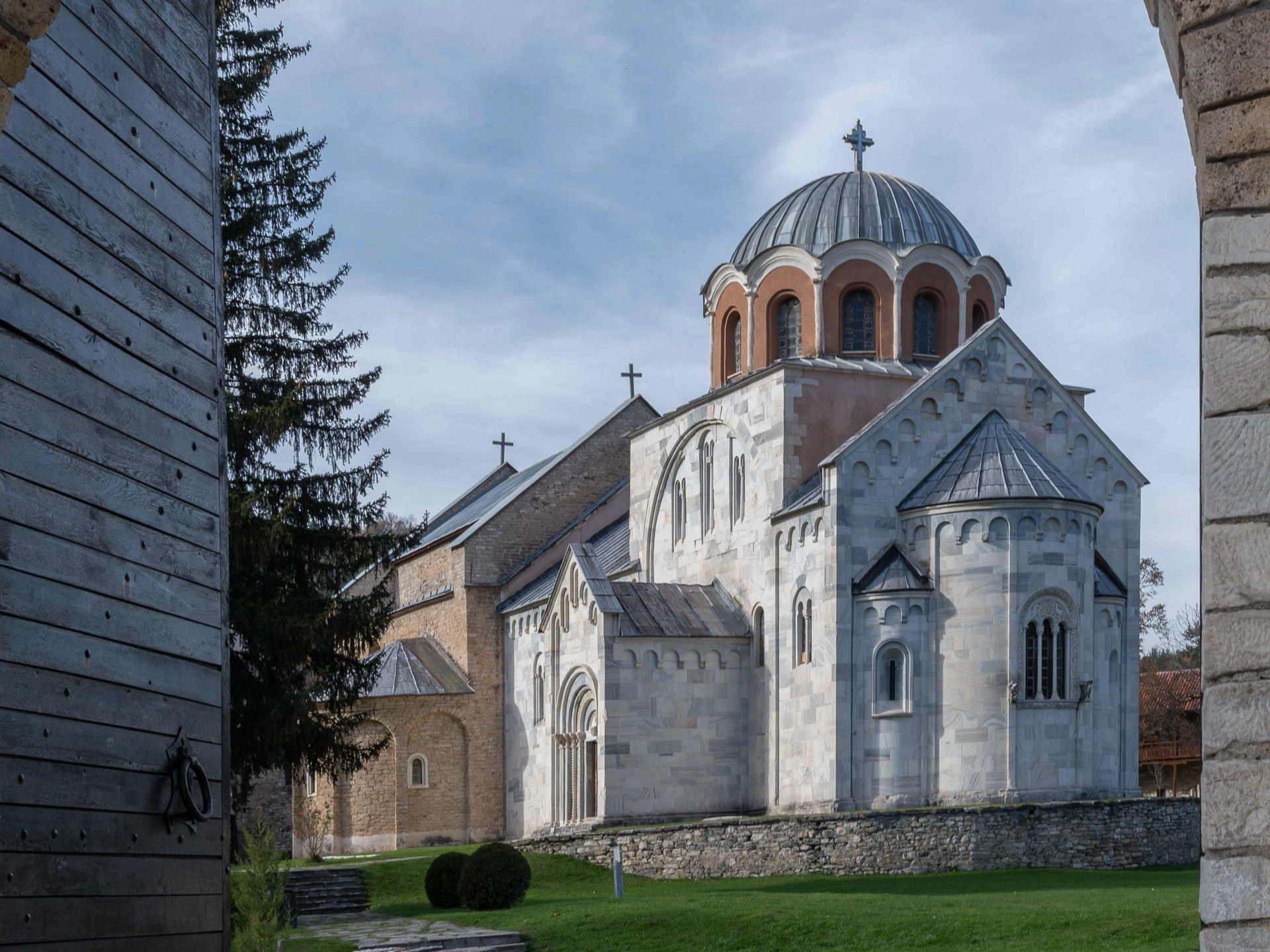 Svetlana, your capture of the monastery is very beautiful. The gate makes a wonderful frame for it. It does need a perspective correction, and most editing software has a way to do so. Here's how to correct the perspective in Lightroom: