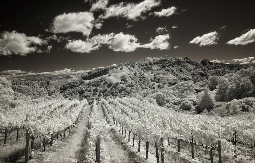 The vineyard, however, seems to be the predominant feature of this image, which perhaps needs darkening.