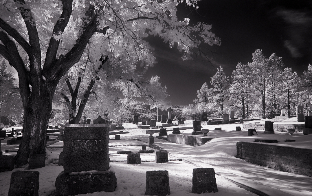 I like the way the light is traveling thru the yard isolating a number of gravestones.