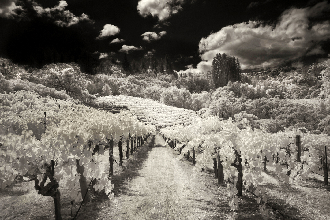 Your approach to IR is always intriguing and this one is no exception. Its so different and pleasing, as is the glow on tree tops. Excellent work! |