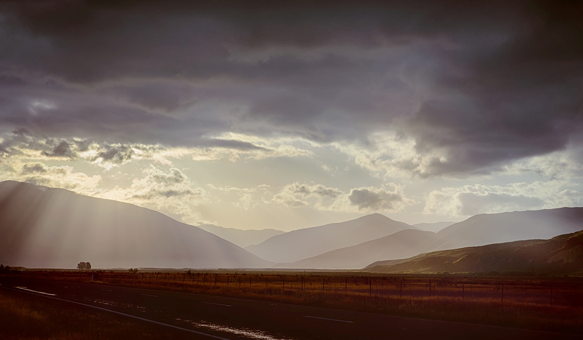 Wow. This is a captivating image. So peaceful and beautiful with the rays of light coming through the clouds. Really great composition with the interplay of clouds and sky curving across the image.