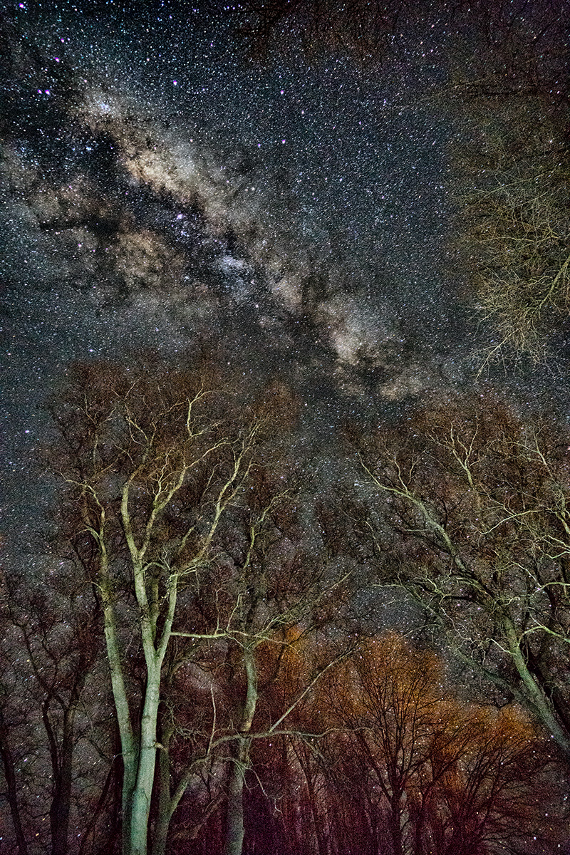 Mary, I think this is a wonderful, other-worldly image. I like the composition and angle of view you used. The trees are just fantastic. I don't have a clue about the techniques people use to capture the Milky Way, but you did a nice job in my opinion.