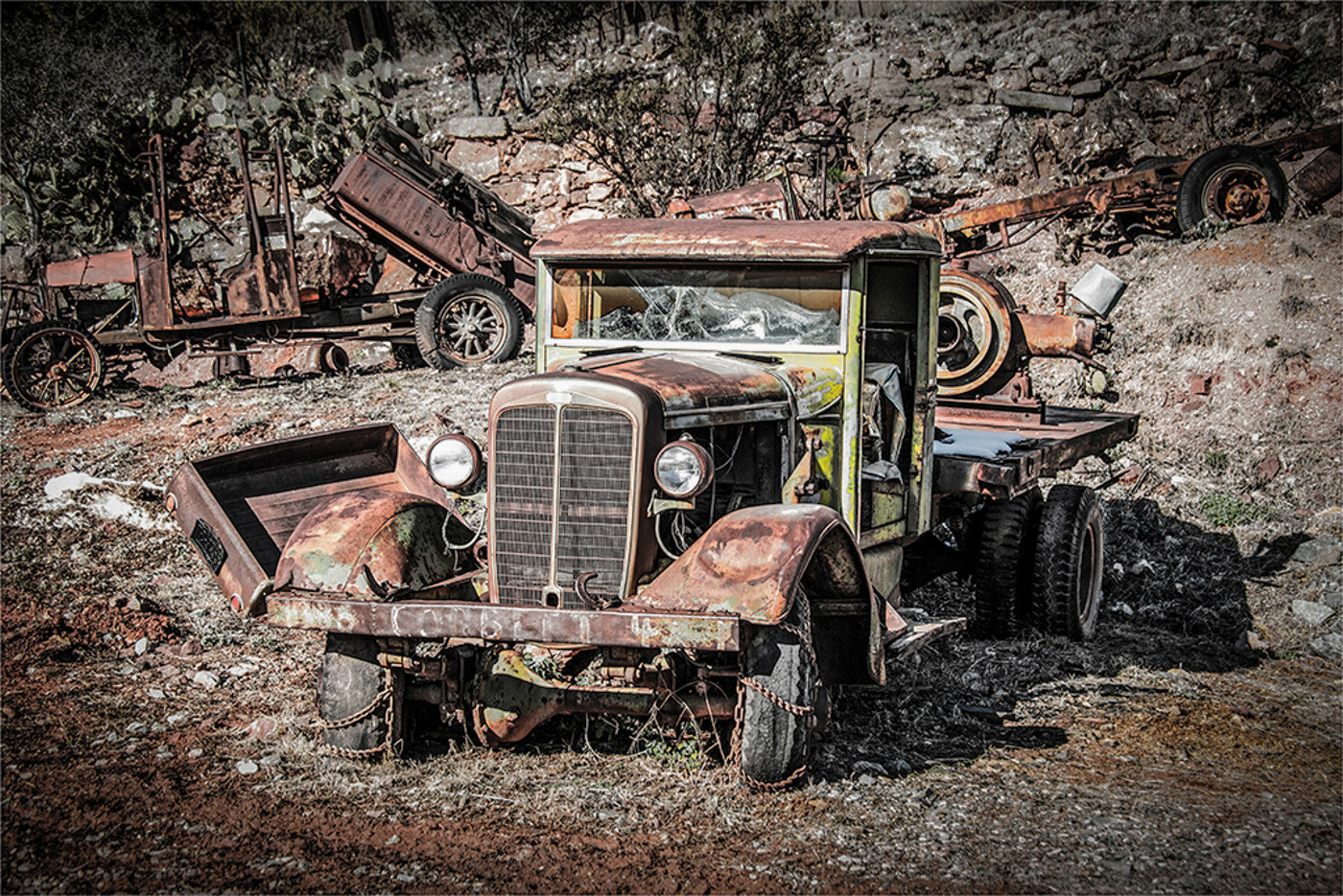 Great subject matter and composition Linda. Like the others, I find there is something really appealing about rust and decay. Also like the others, there is a lot going on, so maybe darkening and blurring the background would highlight and bring out the truck. And/or adding a dark vignette to help focus on the primary subject? I've added some visual feedback as food for thought. Just some ideas. I took this into Lightroom and brushed in a mask on just the background. Then I reduced the clarity and exposure, increased the shadows, and added a dark vignette around the edges. I also decreased the highlights a little. |