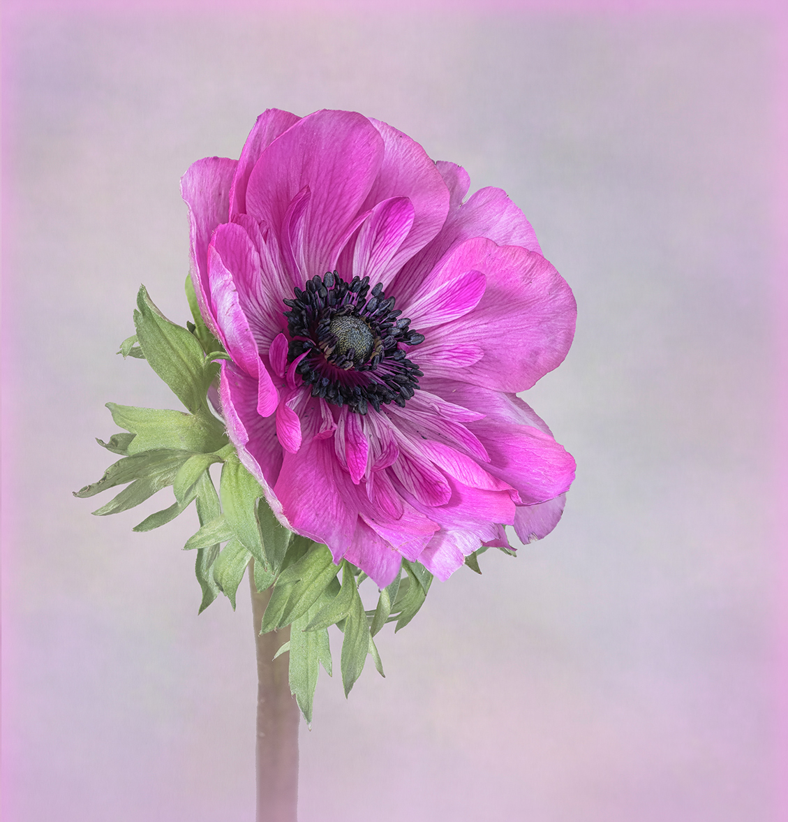 Your edits brought out beautiful details in the flower while added a subtle softness as well. I thick cropping the long, thick stem could improve the image (agree with Connie), and I don't feel the pink edging elevates the flower either. Maybe a very feathered vignette could draw more attention to the subject rather than the thin, pink edge? I've added an example as food for thought. I cropped the bottom, but I left your original side and top edge because I didn't want to crop any further. I then overlayed a layer with a pale pink vignette. Not sure if that really works as well since I left the original edge in? |