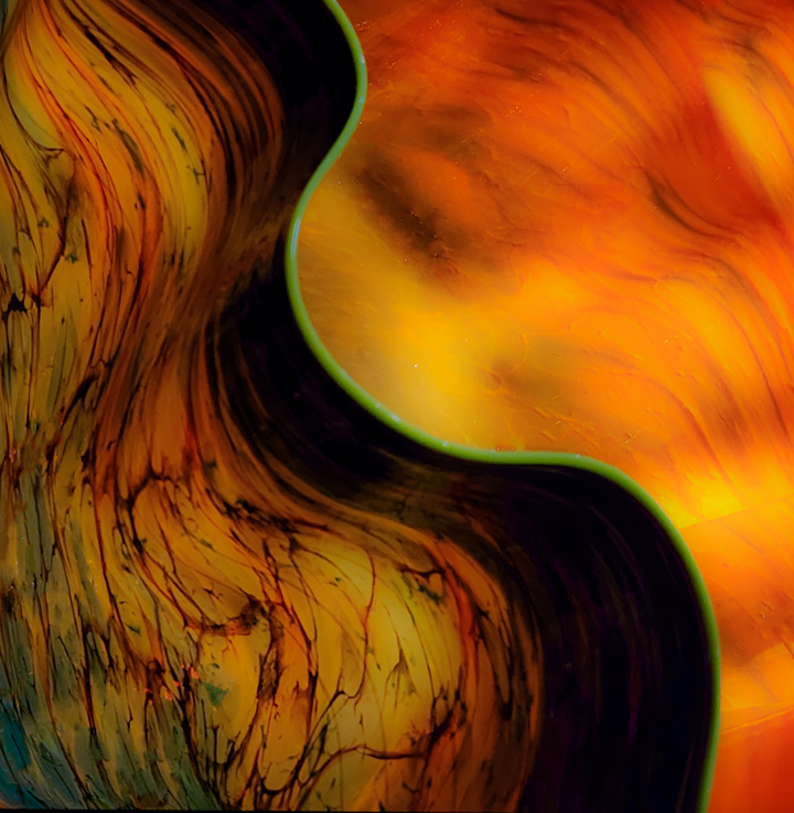 I like all of the curved, flowing lines, but I feel the image might be improved by a crop that simplifies it. There is a lot going on in my opinion, and I wondered if focusing on the curved green edge might be interesting. So I've attached an example cropping into that edge and flipping the image as well. I also blurred it by moving the clarity slider in Lightroom all the way to the left. It reminded me of flowing liquid. Just some ideas. I think you could play around with this a lot, LOL. I can see why you were drawn to photograph it.
