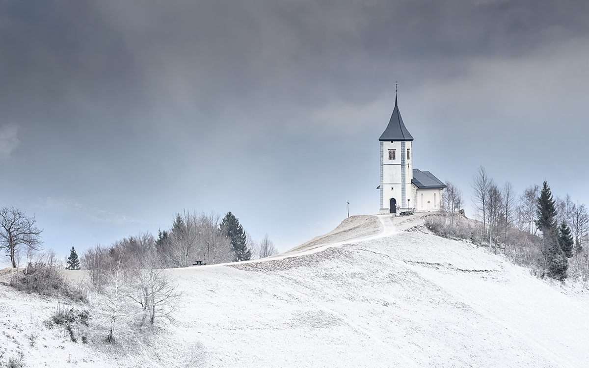 I like the long slope leading up to the church, however wondered what a tighter crop would look like. Since the subject is the church I used a rule of thirds grid and lined it up on the right line. I also cropped some from the bottom. It seemed a bit more balanced to me. Food for thought. |