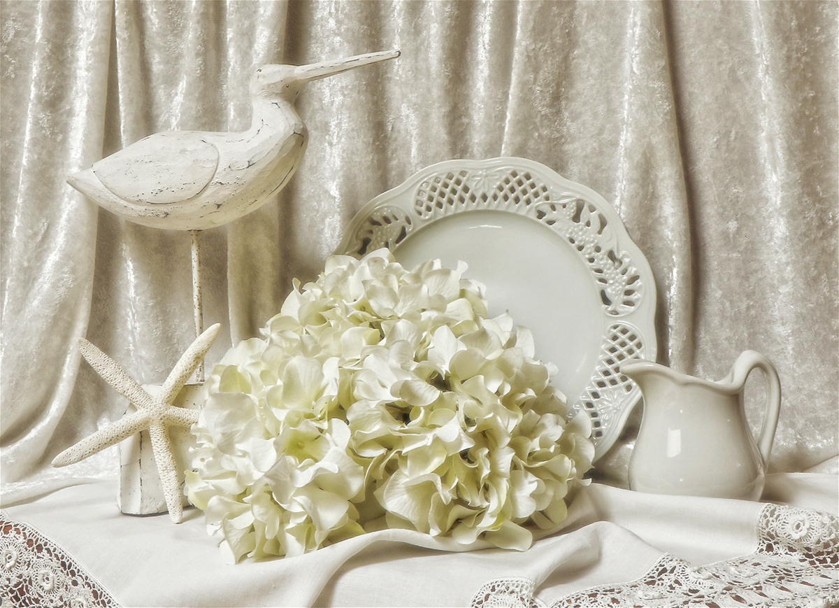 White on white is challenging! I agree with Georgianne that adding more dimension would improve the image. My take on an edit was done in Lightroom CC.