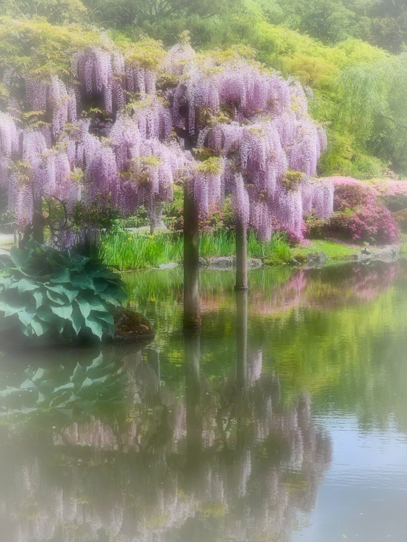 Your subject matter and composition are just lovely. However on my screen the highlights are very bright and the greens seemed a bit too yellow. So I played with your original image in Topaz Studio 2. Here's what I did: