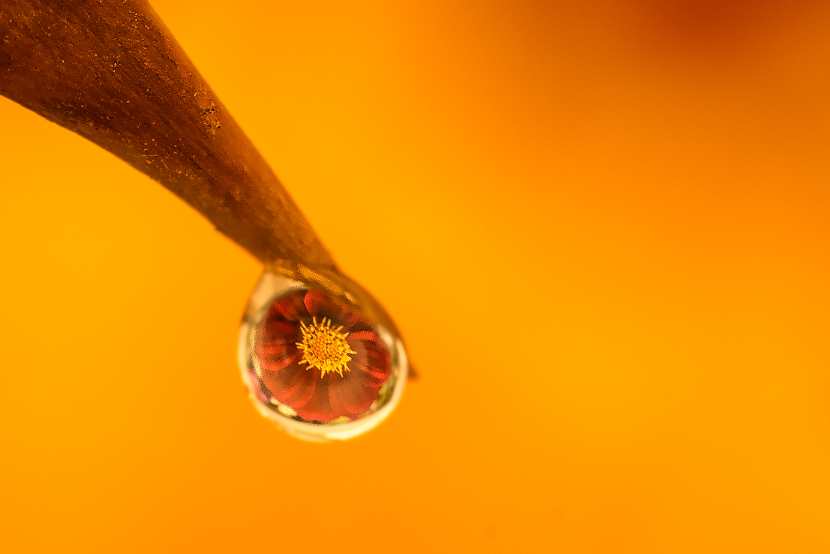 I did two different crops, the one submitted, shows a bit of the flower in the background, this one is a tighter crop but the flower looks a solid color and it seems to lose the connection to the fact the background is a flower refracting in the water. ??? |