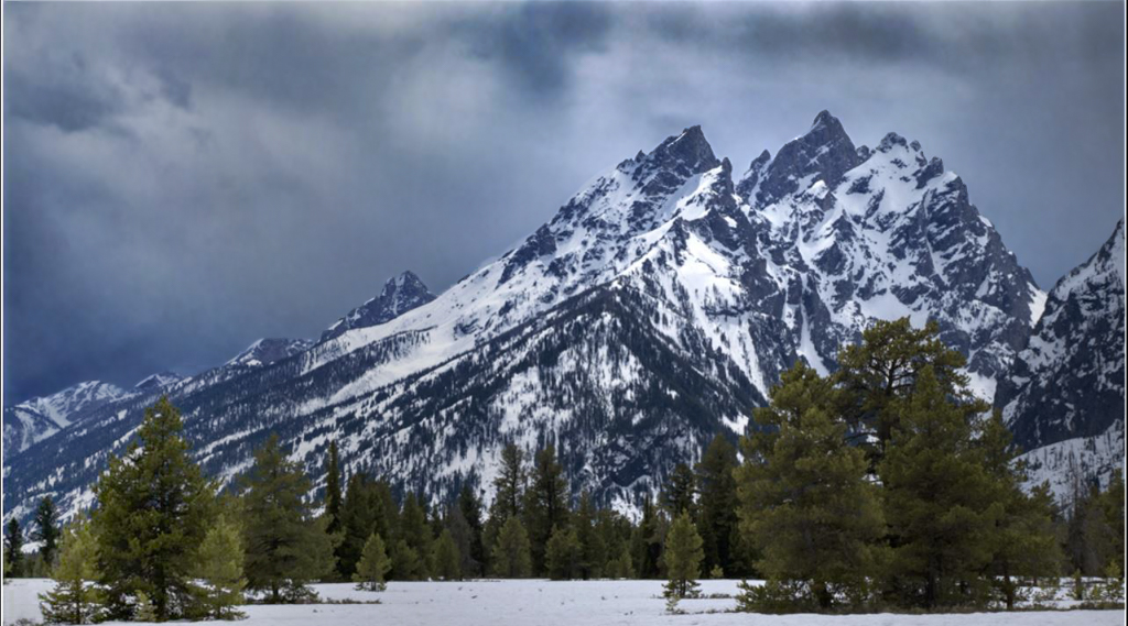 I feel like you captured the essence of the environment with the clouds, strong diagonal of the mountain snow and evergreens. I think that all those elements give a feeling of energy. I think that the snow in the foreground is too grey and there feels like a graduate filter was added to the left side coming across to just past the second big tree from the left. Maybe that was not done, it just feels that way. On my submitted image, I added a graduated filter from the bottom in Lightroom, kept the same exposure but increased the white. I added a second graduate filter from the left side to just a little past the second big tree from the left. i understand if you do not want anything competing with the white on the mountain. Just another thought. |
