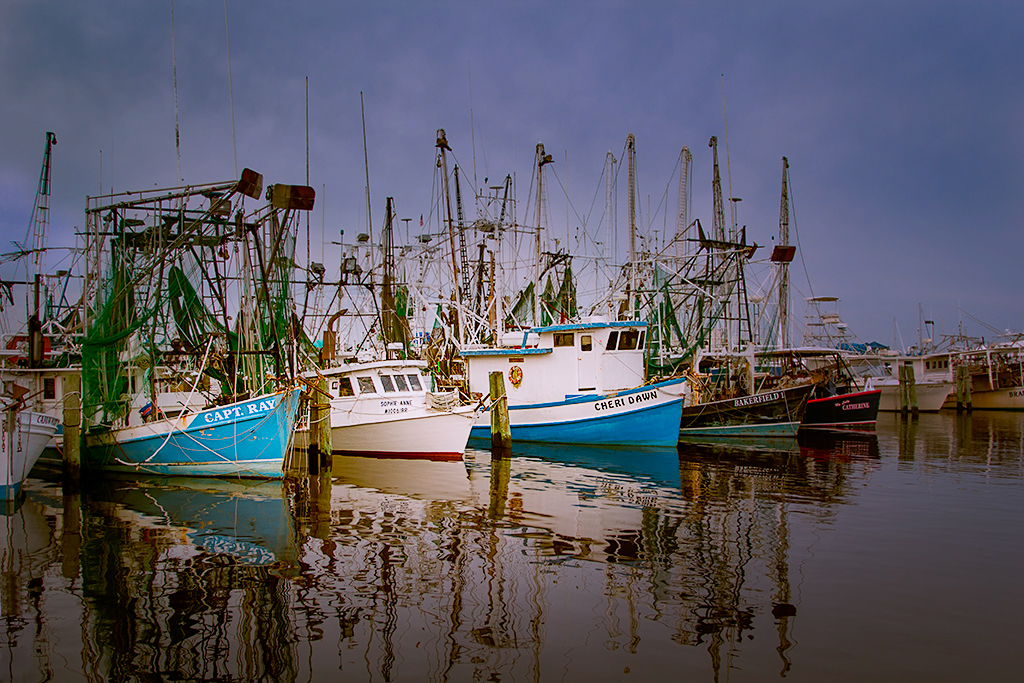 Here is one idea to help you accomplish what you wish assuming that I understood that you were interested in the hulls of the boats and their reflections and minimizing the clutter of the rigging. Things that attract your eye are "light and bright", saturation, selective focus, writing, and faces. Therefore, in this image, I burned the area around the three center boats, and then selectively increased the sharpness around the three boats which also helps the writing on the hulls. hope that this gives you some ideas |