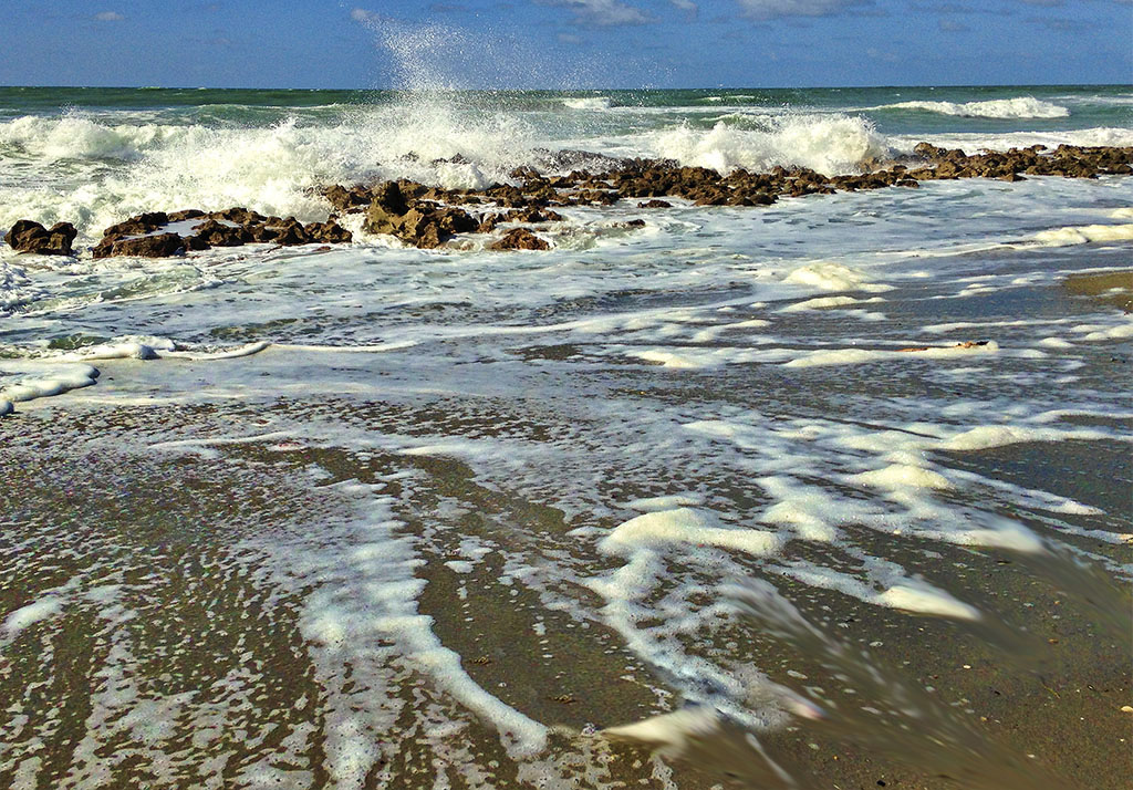 That black object bottom center is distracting. It can't be cropped because that would ruin the nicely curved wave line. Perhaps it is a black rock that could not easily be removed. In that case, moving left or right may have put it out of sight. I tried to remove it in Photo Shop (not very successfully). I also darkened the midtones in Levels to crisp up the highlights and enrich the colors. Nice interpretation of "Leading Lines". |