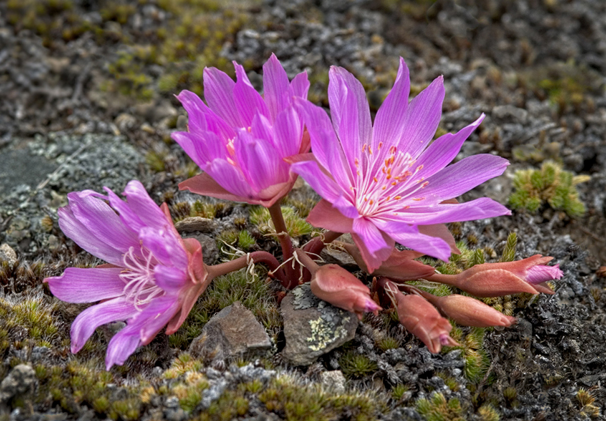 Beautiful flowers. Yes, the fan-shaped composition is the way these blossoms grow, but you took good advantage of that. The depth of field puts the background out of focus, yet still establishes the environment. It is hard to believe that these lovely flowers prefer to grow in such a hard-scrabble place. It seems to be overexposed, causing loss of detail in the stamens. I played with black point, white point, Precision contrast to fix the stamens without hurting the petals. Don'y know if it's an improvement or not. |