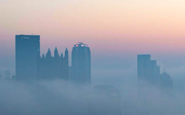 This image was the first time I did a photo of city buildings in the fog. So I wanting your opinion on where to crop. I like the triangular top to the building on the left but think Tom is right about the cropping it out because the brightness and colors are on the right. |
