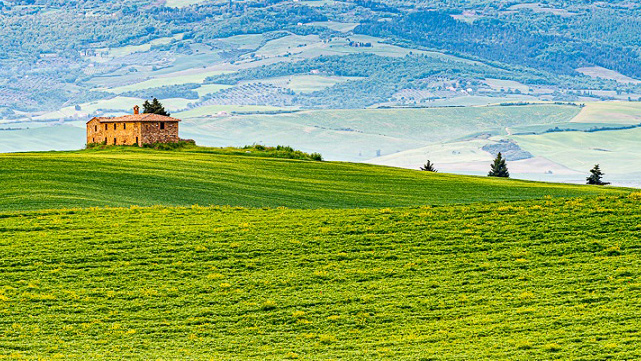 I like the simplicity of the image. I like the house on the left and 3 trees on the left on the edge of the hill . The shadow before the house is very nice to me. I understand the issue of the background. I find the foreground to be too much. I believe cropping the foreground and background with more focus on the house and trees would enhance the image. |