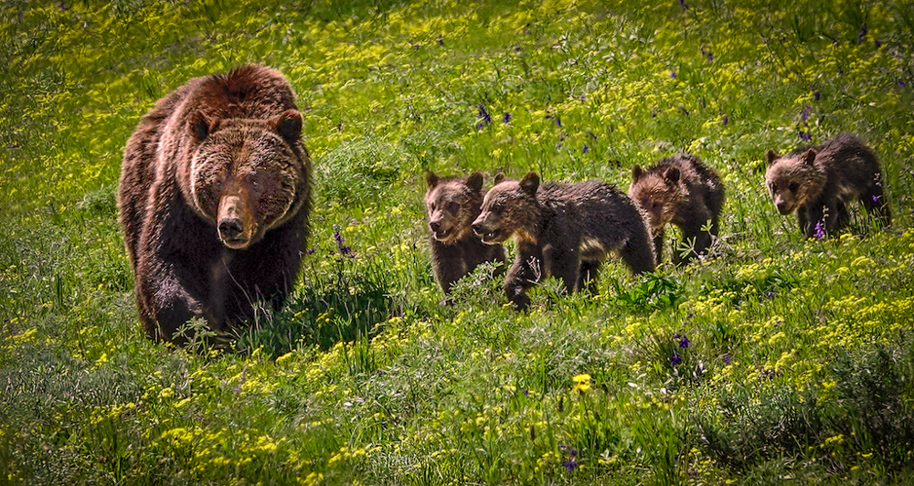 Definitely a well done wildlife image. The only thing I suggest is lightening the facial area of the adult bear a bit - the eyes are hidden in darkness. I realize the eyes are face are naturally dark so it won't make a big difference. I also added a vignette to emphasize the bears and darken the background a bit. |