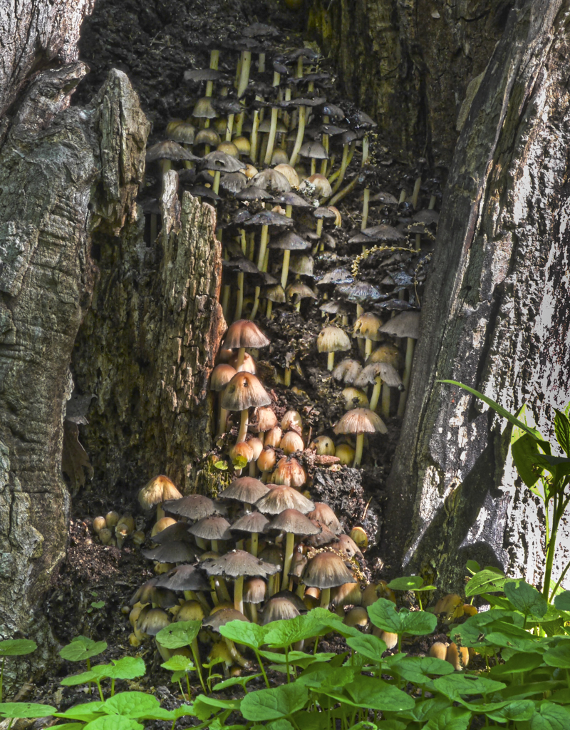 Here are a couple of images of mushrooms growing on a decaying tree on our property. I don't think any of my mushroom images are particularly compelling but I like these. |