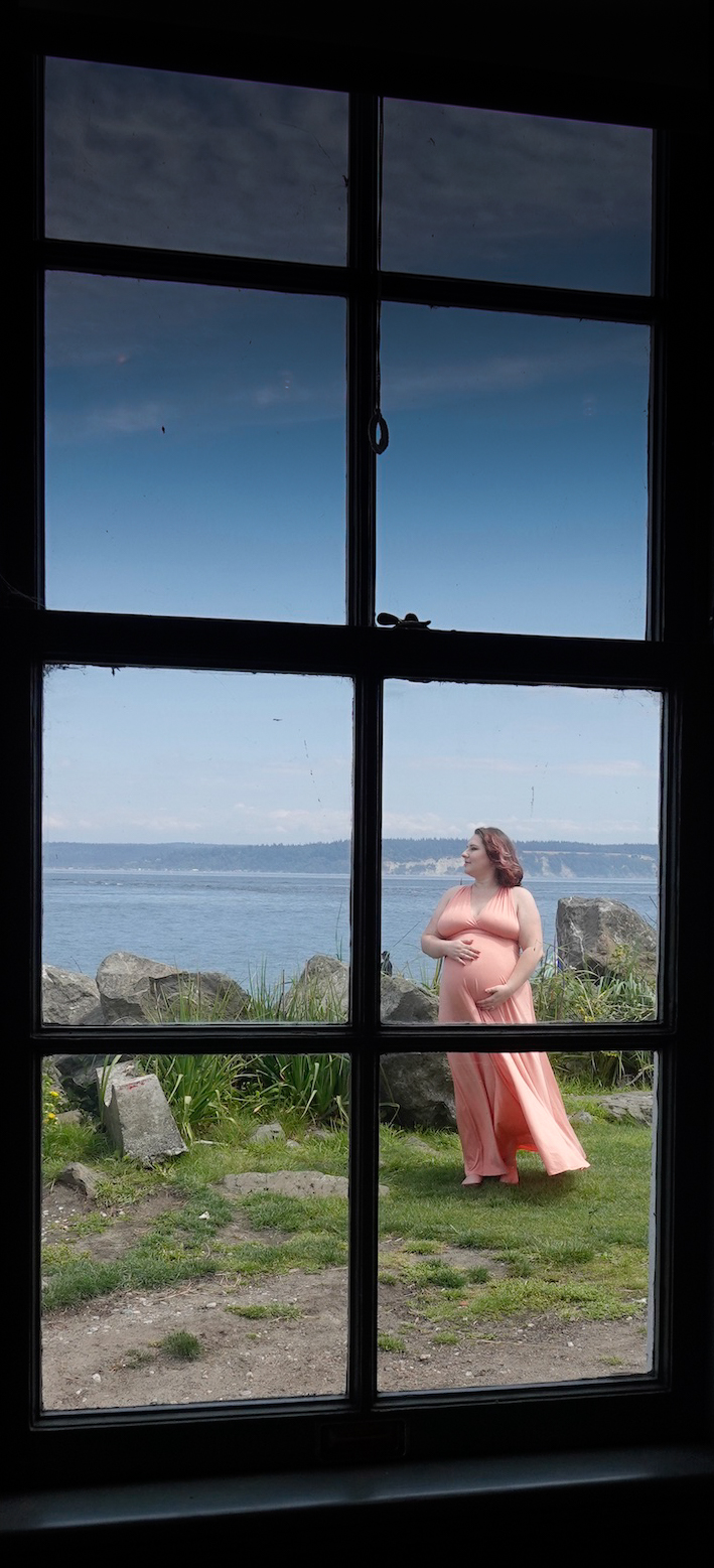 Since we live in Michigan, I have taken many photos inside old lighthouses looking out through a small window. Usually, I try to include something interesting inside, like a curved stair rail or stone wall. However, with this image I think the real visual interest is outside, so cropping out nearly all of the inside works well. The question then is which crop works best. Yours is fine; others are possible (see attached). Somewhat to my surprise, I like the crop which includes the total vertical height of the window. The pink pregnant lady has lots of weight (both literally and figuratively) in this image so having more window to balance that visual weight works for me. I darkened the upper sash to reduce the brightness on top. Cropping, as always, is a dark art. |