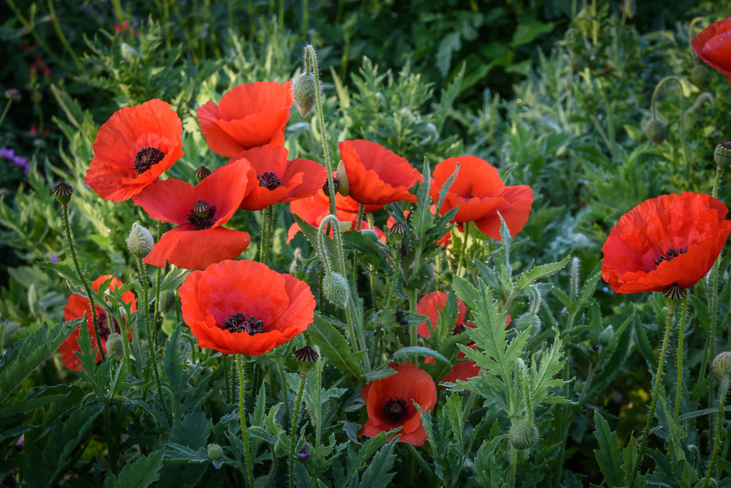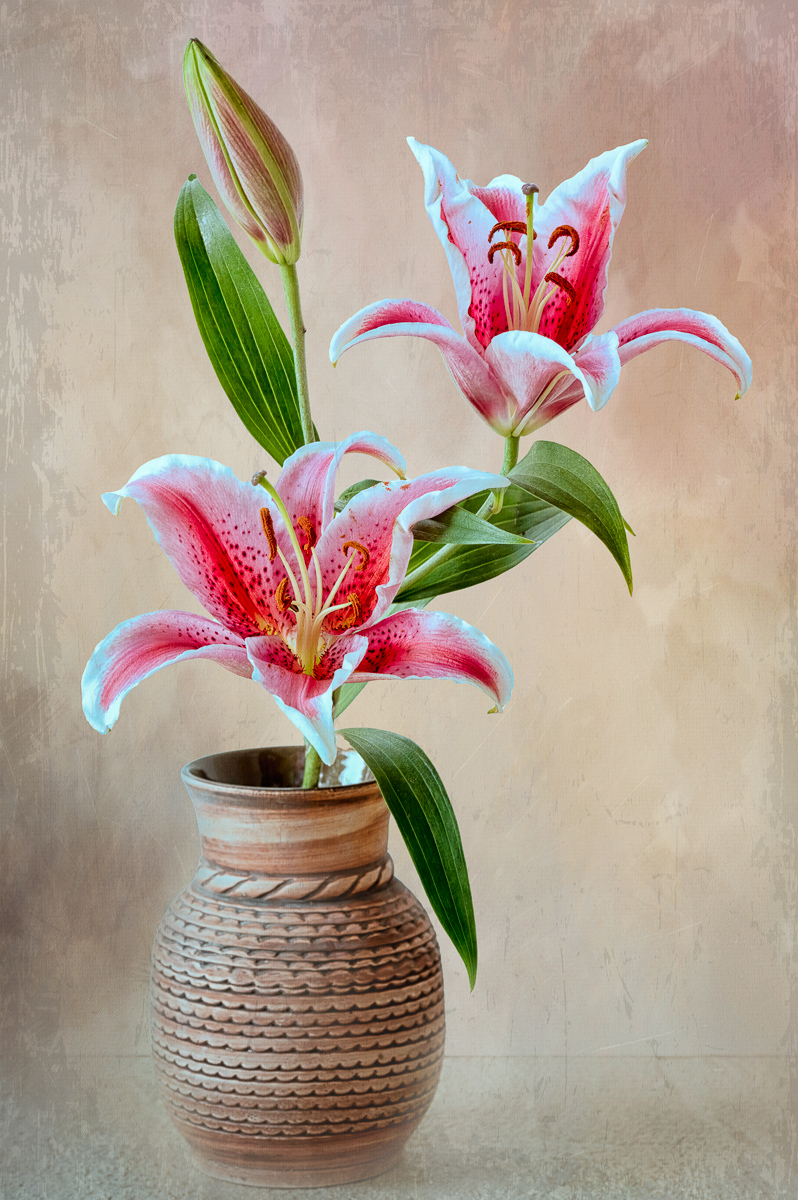 I can see what you were getting at here - the repetition of the vertical lines. Good idea. From Marti's version it seems to me that you needed more contrast in your post processing. The colors of the flowers, and particularly the leaves, need to be emphasized so that they pop out. May be just my eyes, but your colors were stronger in the original. |