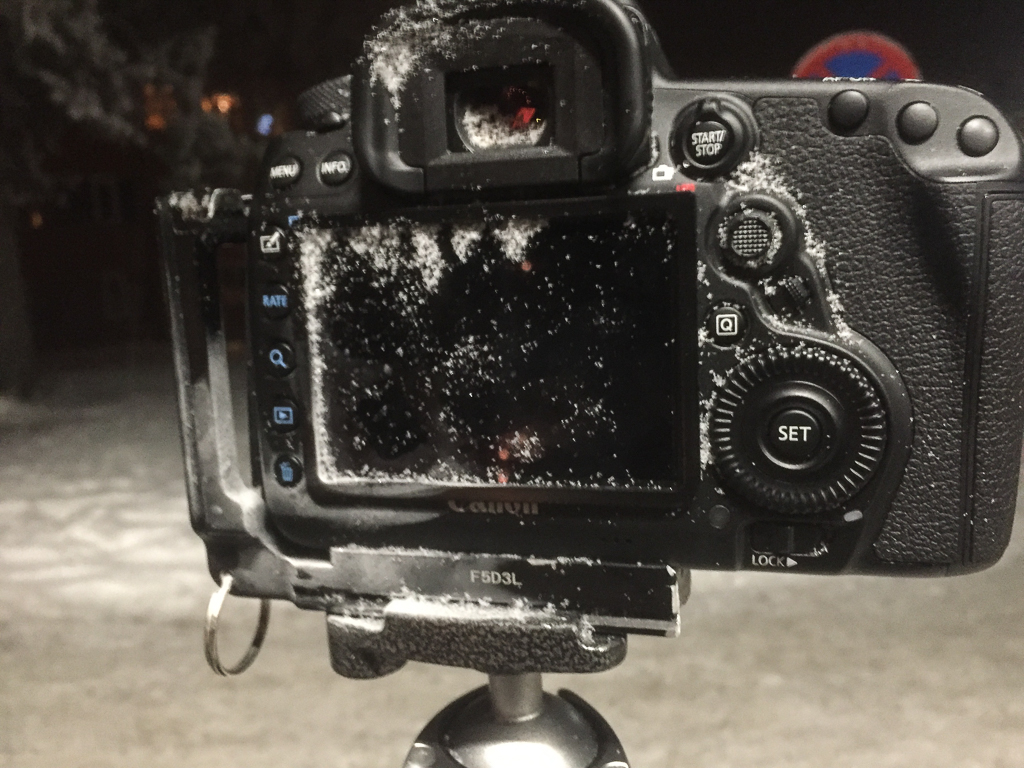 Thank you guys. It was a really cold evening and it started snowing right afterwards. Here is how the camera looked like :) |