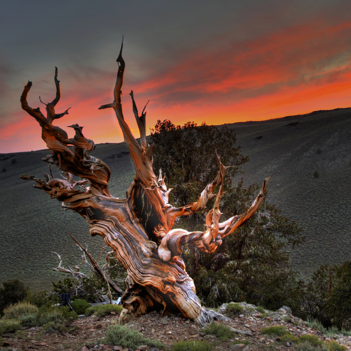 An impressive shot of the pine tree. The twisted shapes and mix of colours are just fantastic! I started thinking of story about the burning bush when Moses was in the desert. I felt, though, that the sky (even if it is beautiful) took some attention from the tree, so I will suggest to darken it a bit. I would also dodged the upper part of the tree so it stands more out to the sky. May be a lower camera position would given (even) more drama. At the end I would burned the hill being the tree in order to give more contrast to the tree.