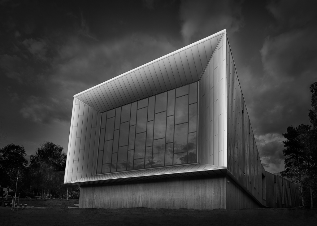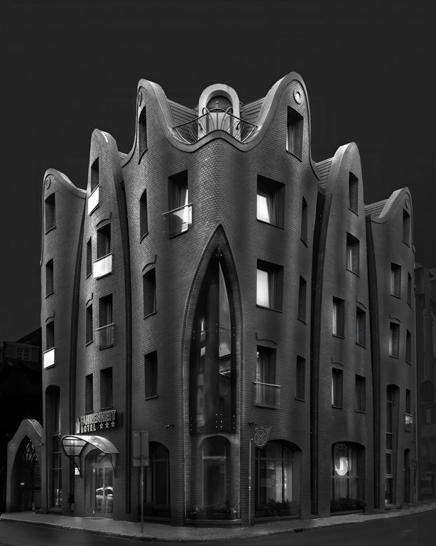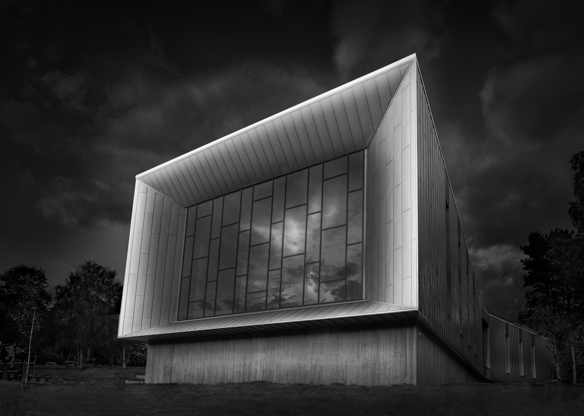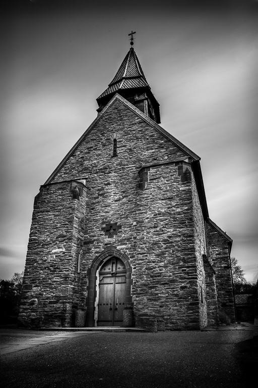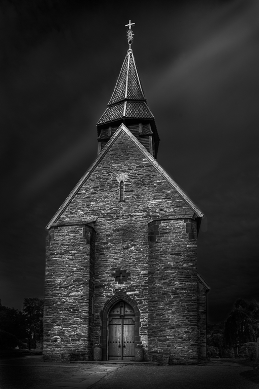 It is an interesting building that brings me back to Western movies. The mid-day light doesn't bother me, but I would like to see more of the building and less of the trees around it. I agree that B&W might work well here perhaps with a sepia tone. |