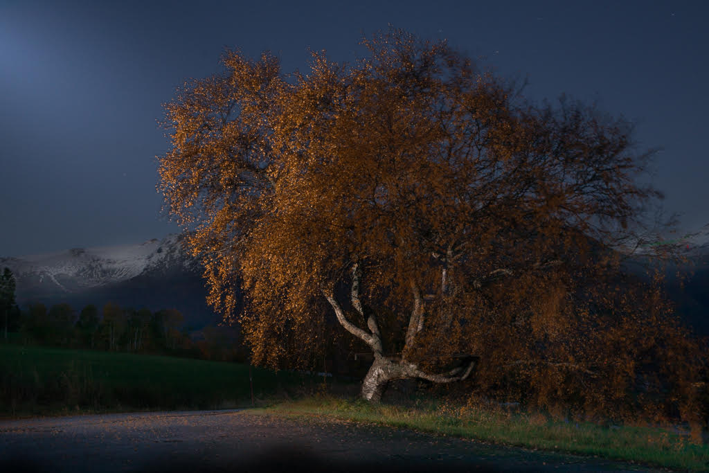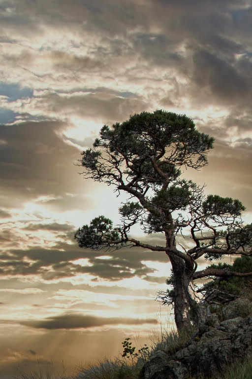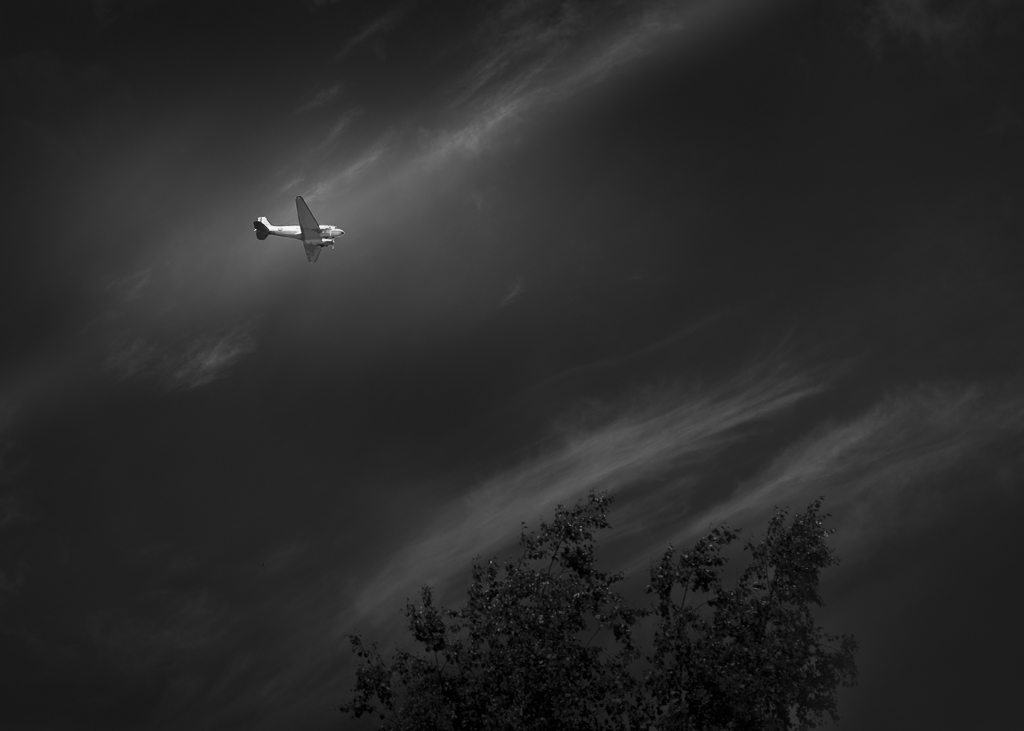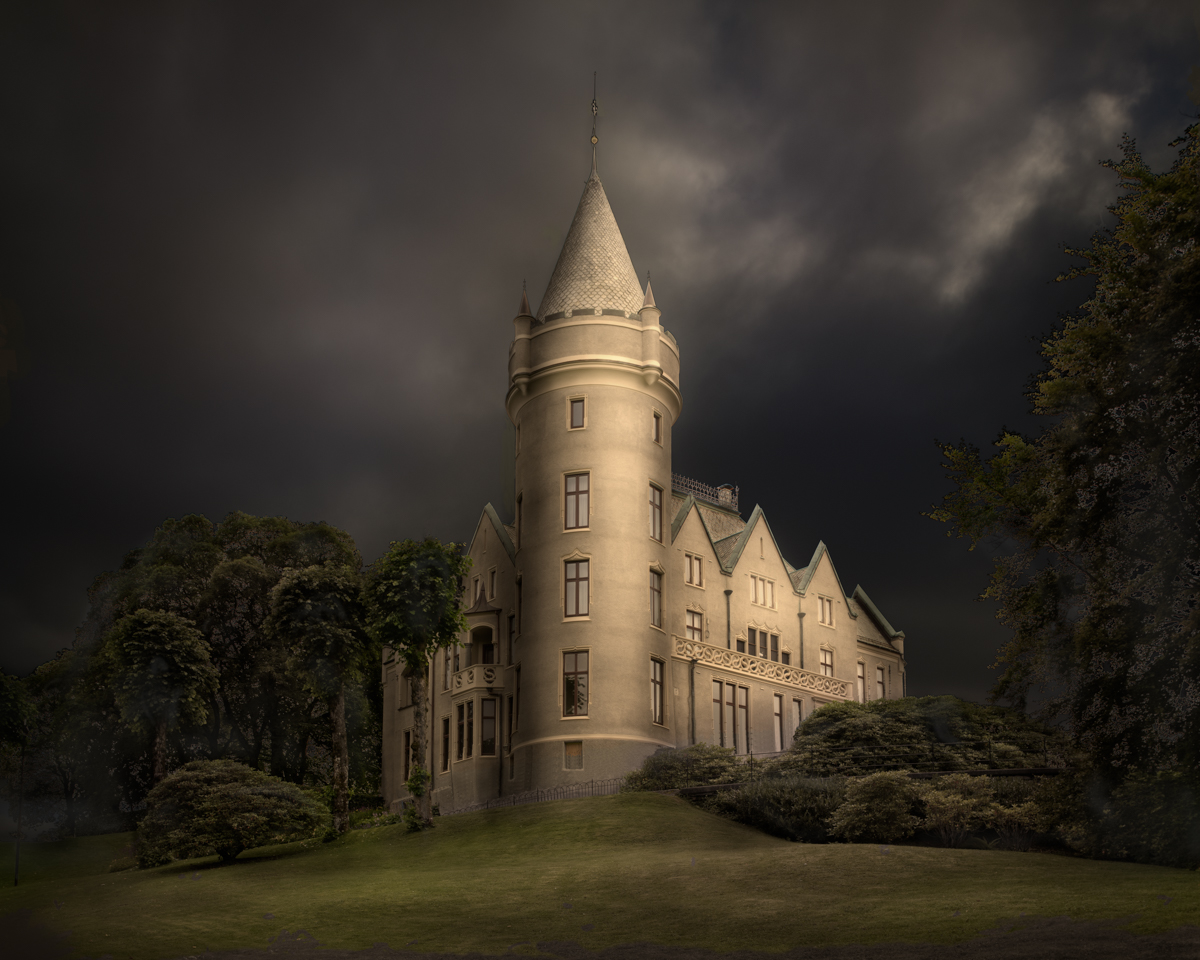 Just a suggestion, but you may try to use only the dark picture and make the trees silhouette. I think that will give a more dramatic look. |