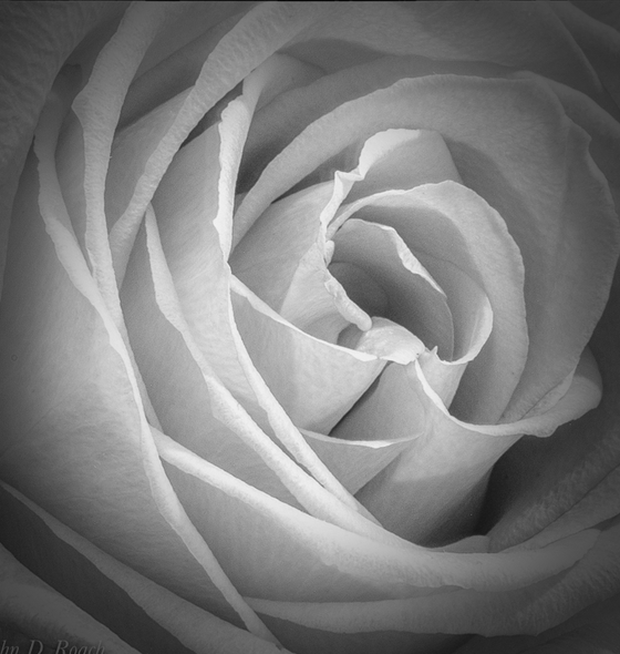 And a very pretty pinkish rose, if I might say so. But the mono is more interesting to us photographers, I think, as the textures and shapes in the original are lost to the colour, so for me the mono is the more satisfying picture.