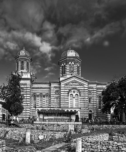 Personally I think the ruins (?) in the foreground are too dominant, and I'd have zoomed in or got closer to emphasis the Cathedral. |