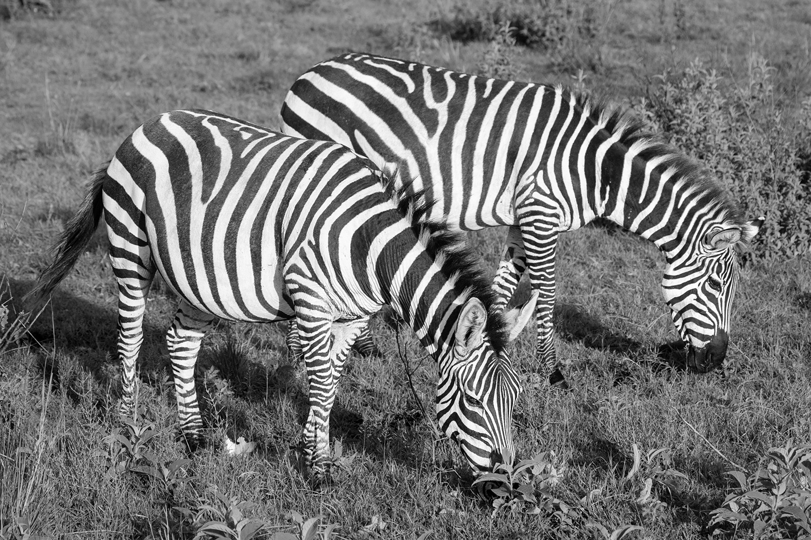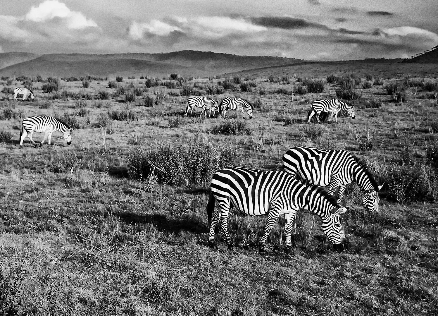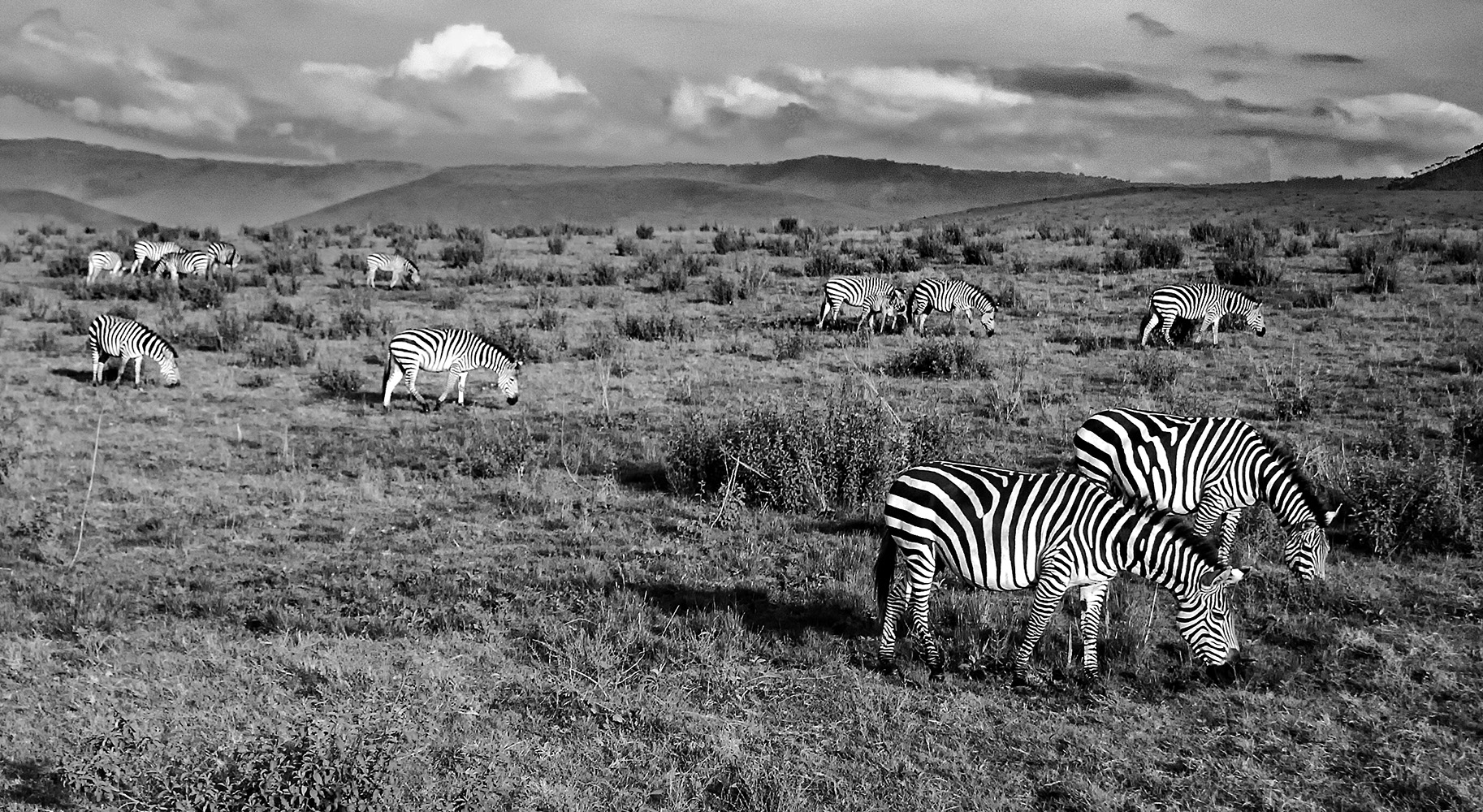 Thanks for your response. This image has taught me to consider a monochrome interpretation more often. I've mad some final local adjustments to try to pop the zebras from the field. This final crop keeps quite a bit of the herd. Any comments on these changes? |