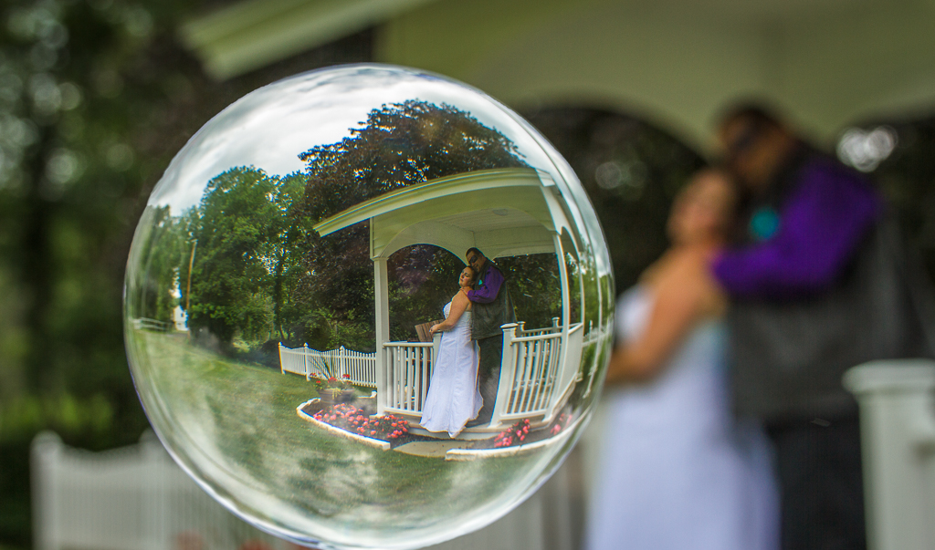 3. Focus more on the inside of the ball with the low f-stop .. f/4 or 5.6.. it should have a nice clear on the inside with the bokeh behind the ball..